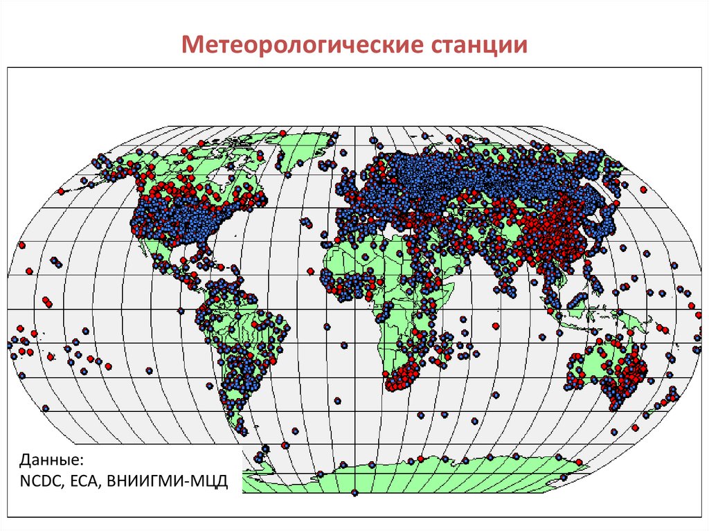 В настоящее время данные о погоде собираются со всего мира в единую информационную сеть, в которую входят около 15 тысяч метеорологических станций, из них Российских почти 2 тысячи станций.