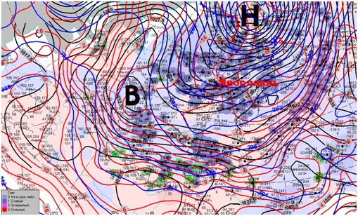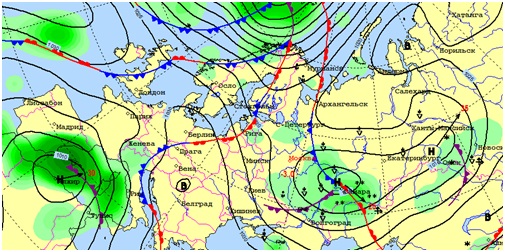 В настоящее время приземные карты погоды с фронтальным анализом составляются каждые 3 часа.