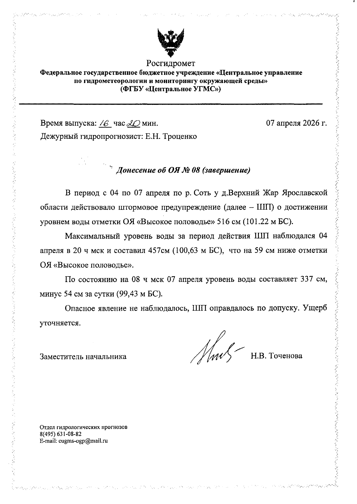 • Донесение об ОЯ №08 (завершение)