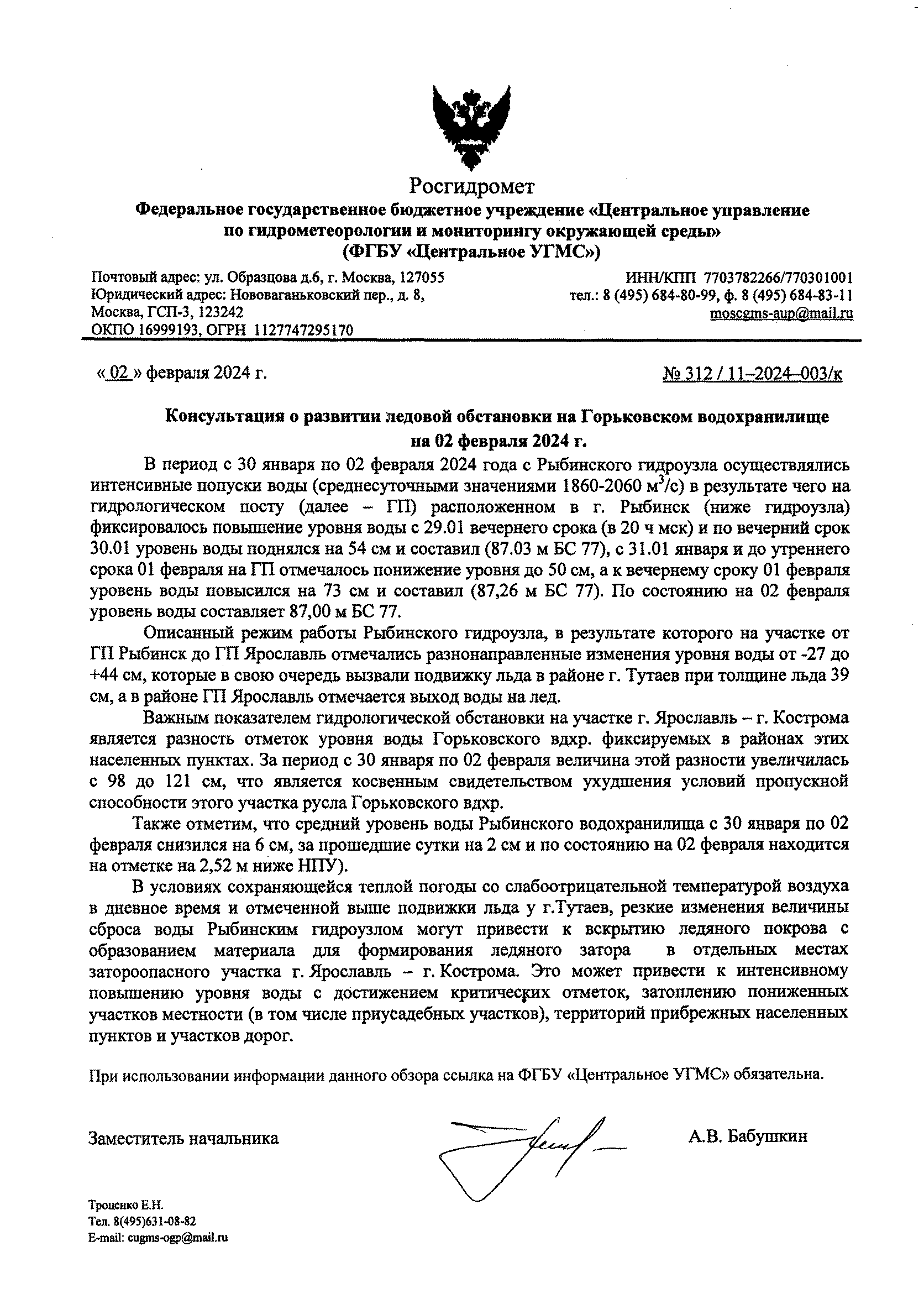 Консультация о развитии ледовой обстановки на Горьковском водохранилище на 02 февраля 2024 г.