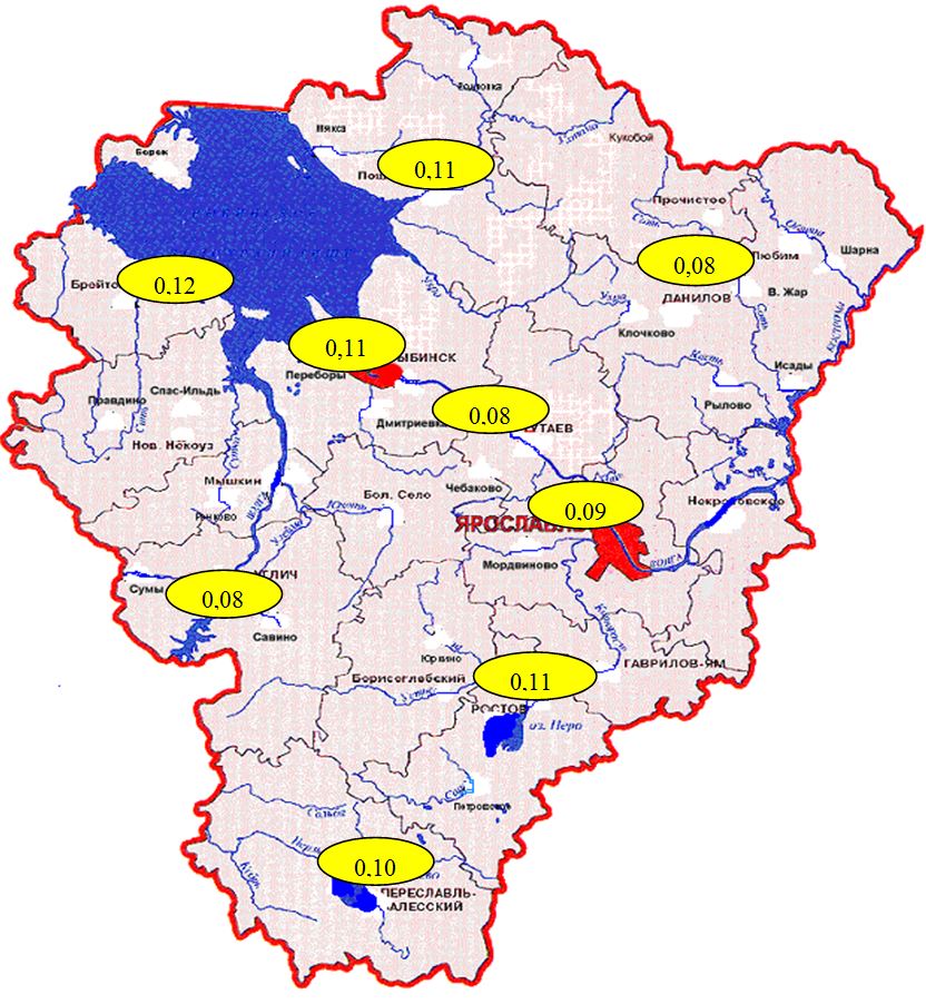 Среднемесячный радиационный фон в мкЗв/ч, наблюдавшийся на метеостанциях, представлен на карте.