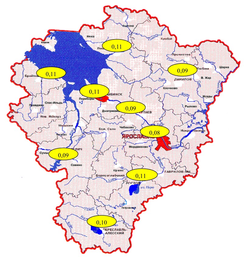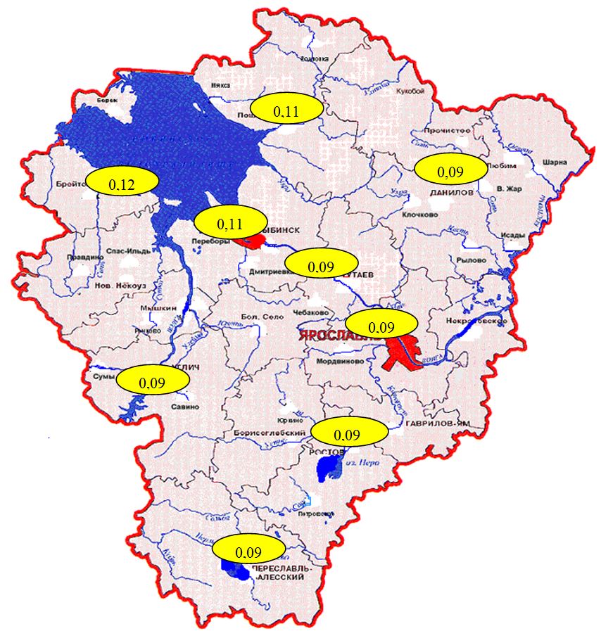 Среднемесячный радиационный фон в мкЗв/ч, наблюдавшийся на метеостанциях, представлен на карте.