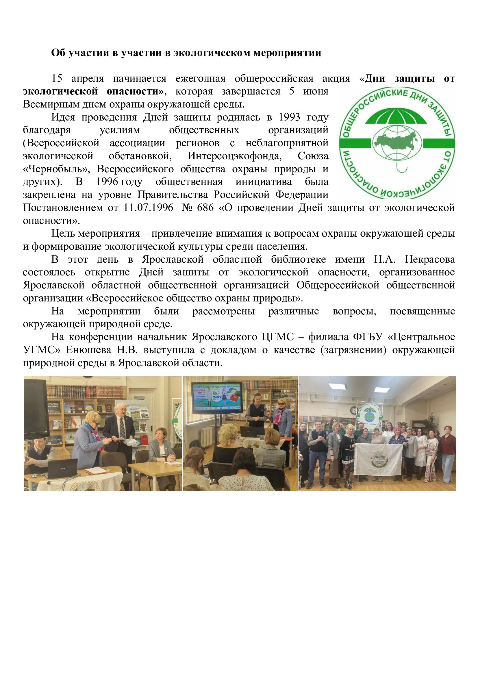 Об участии в экологическом мероприятии.