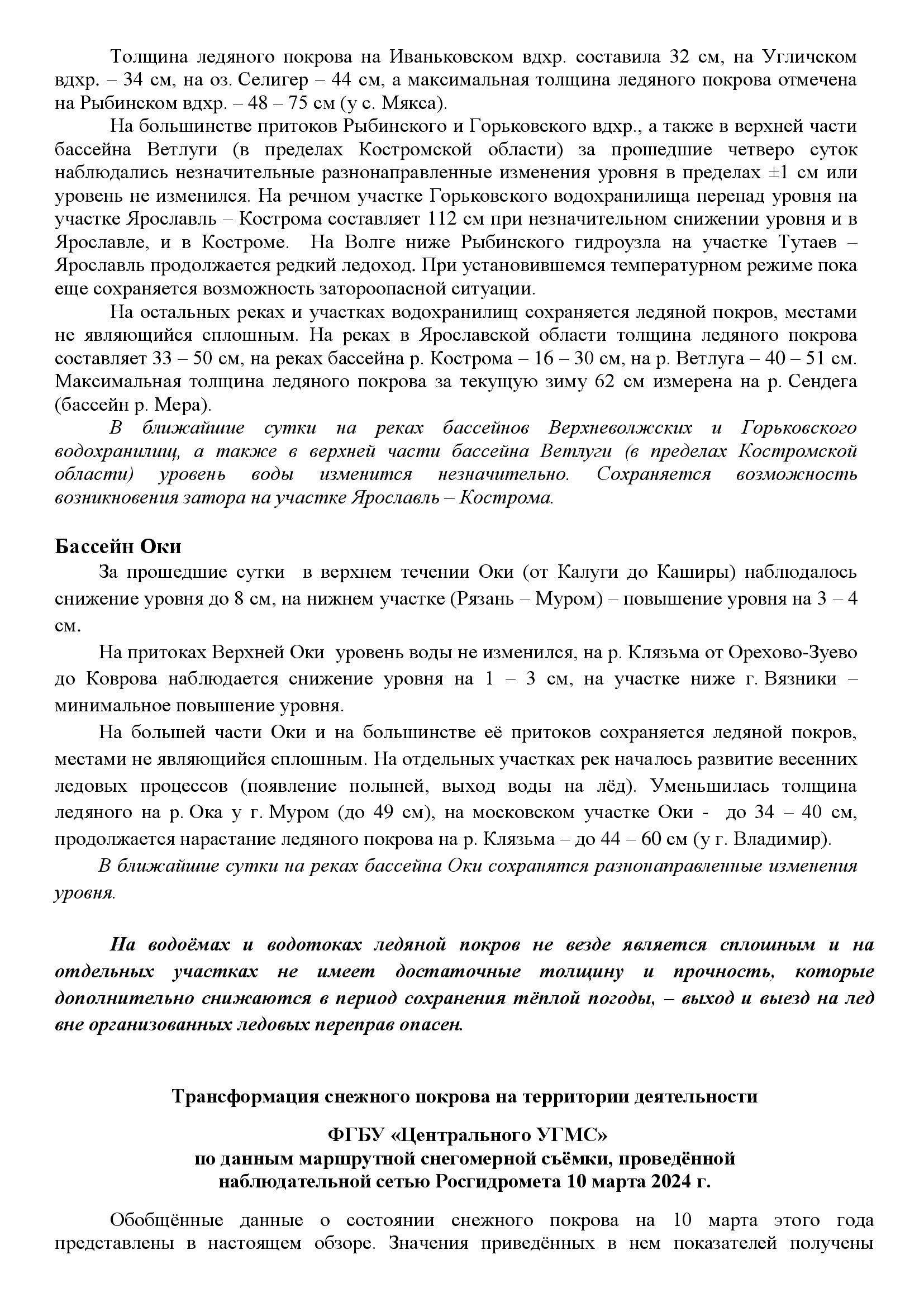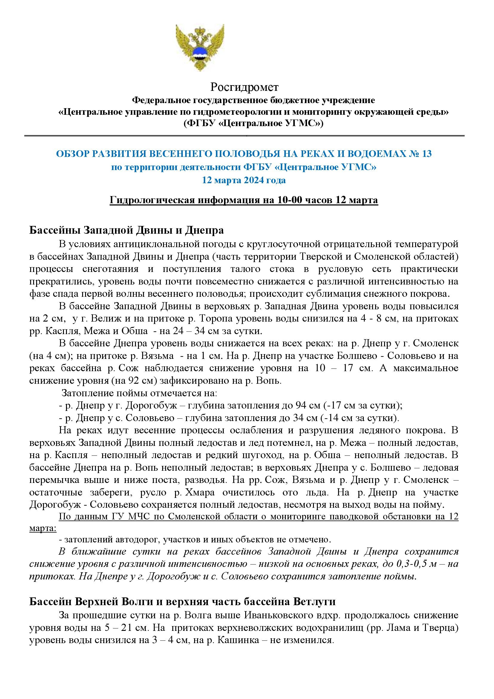 Обзор развития весеннего половодья на реках и водоемах № 13