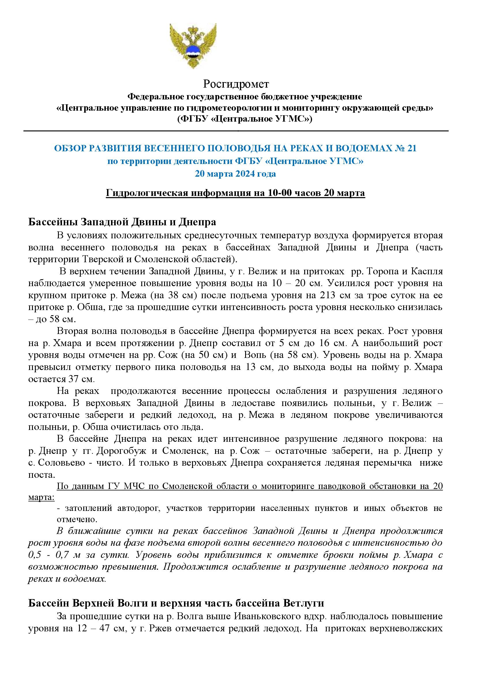 Обзор развития весеннего половодья на реках и водоемах № 20