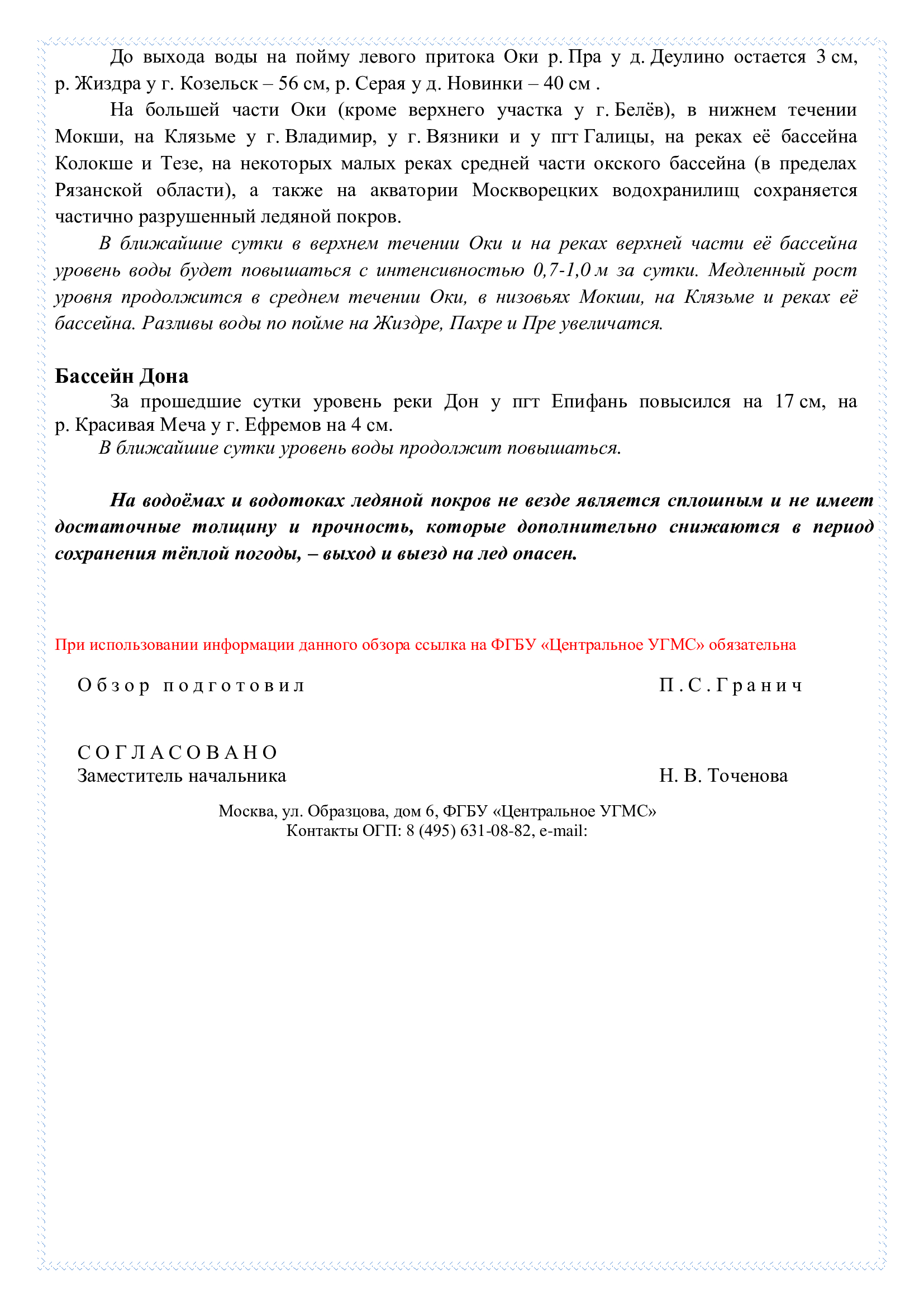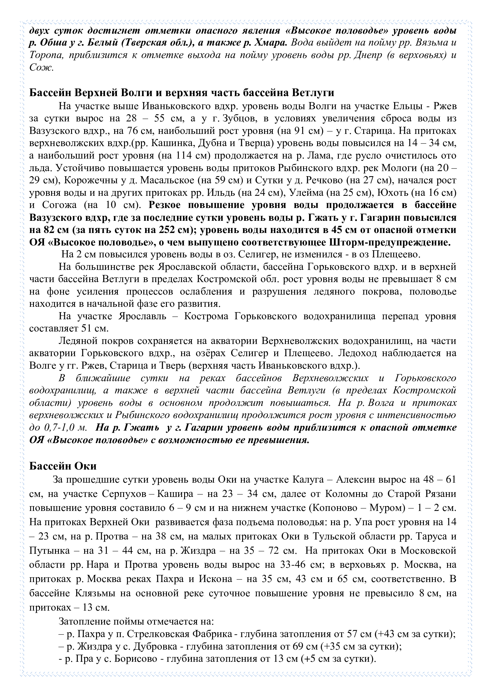 Обзор развития весеннего половодья на реках и водоемах №25