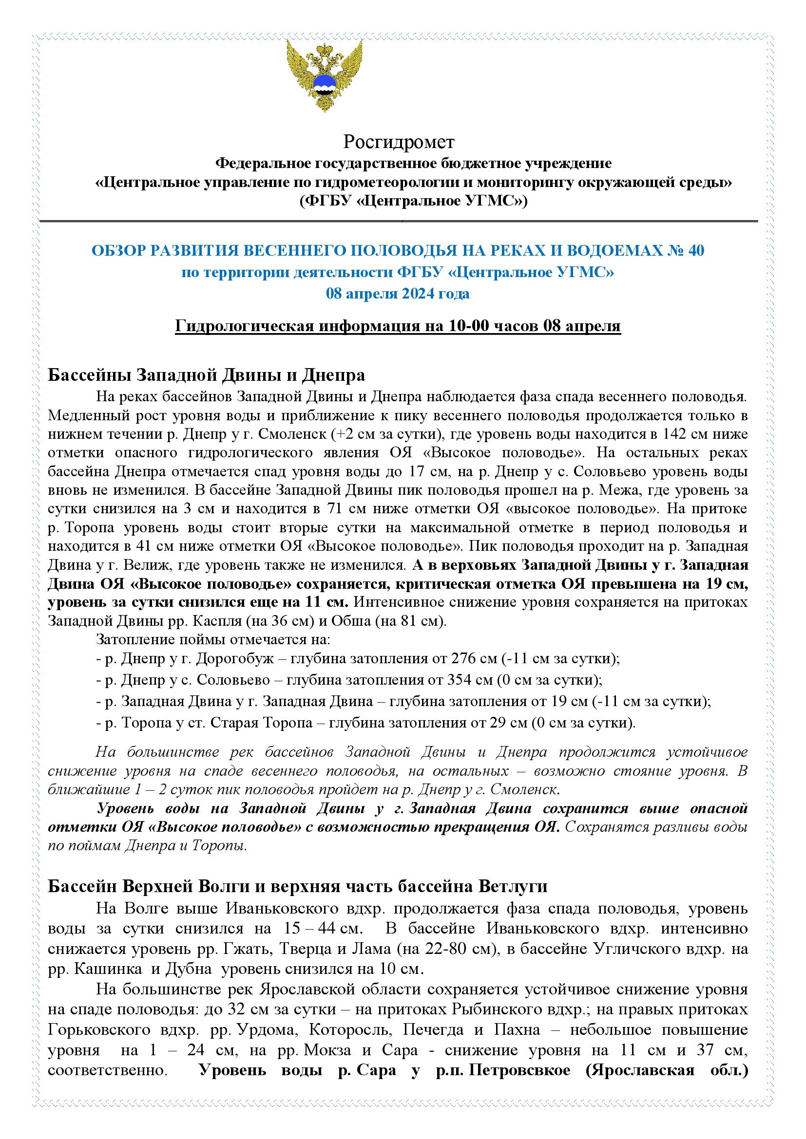 Ранее Предыдущая запись: Обзор развития весеннего половодья на реках и водоемах №39
