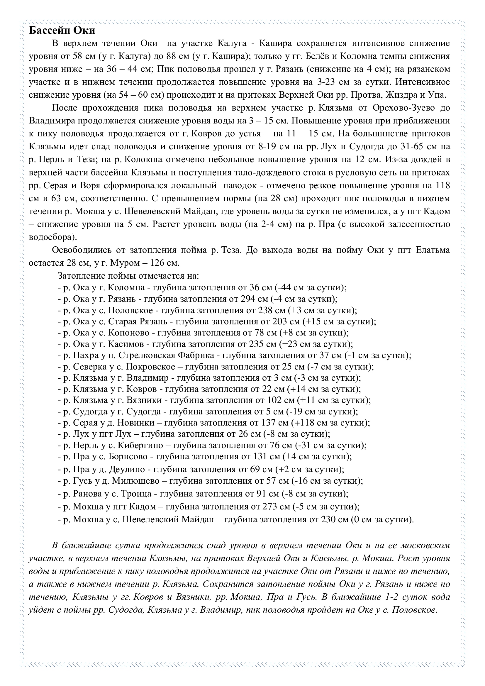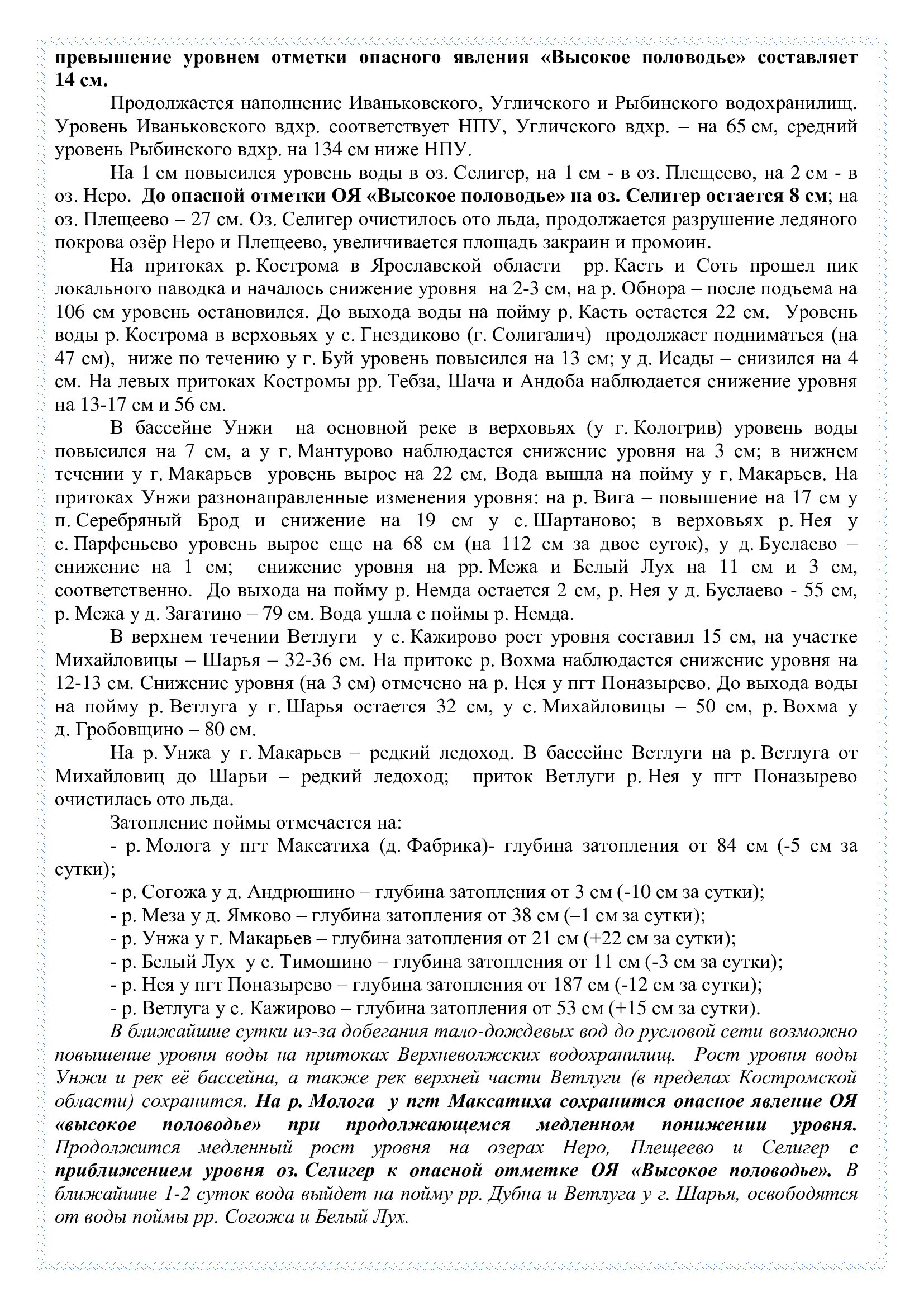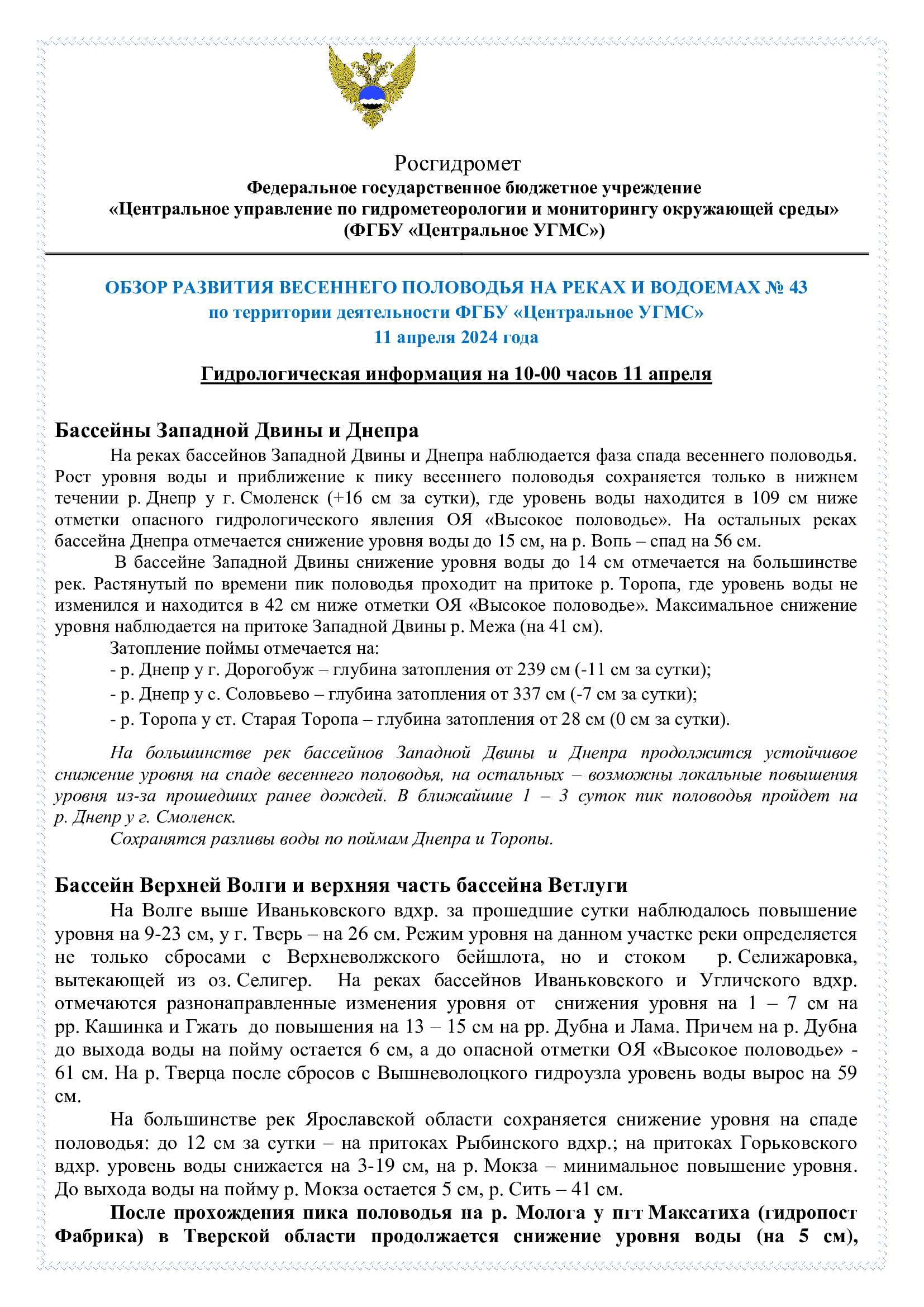 Обзор развития весеннего половодья на реках и водоемах №43