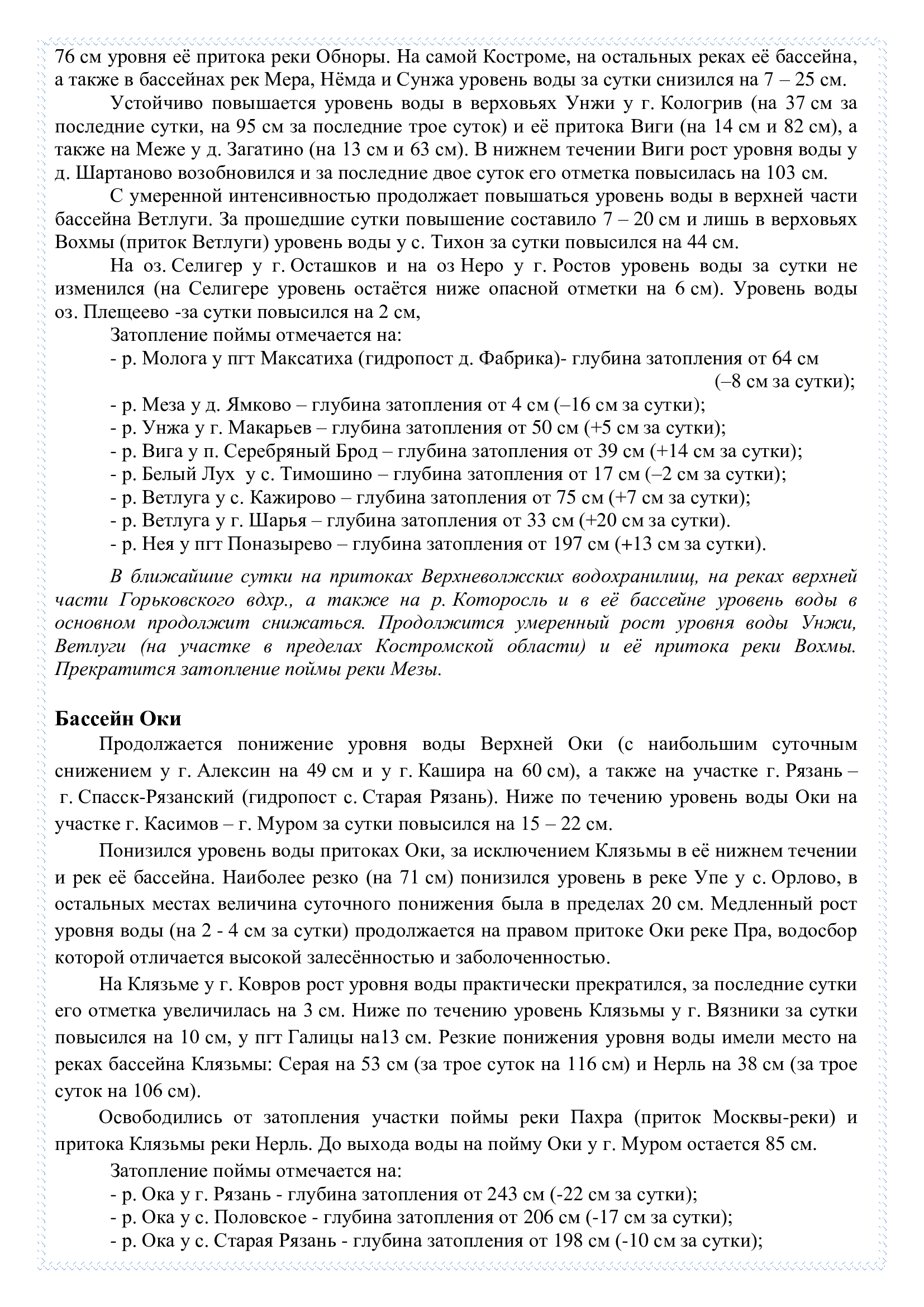 Обзор развития весеннего половодья на реках и водоемах №46
