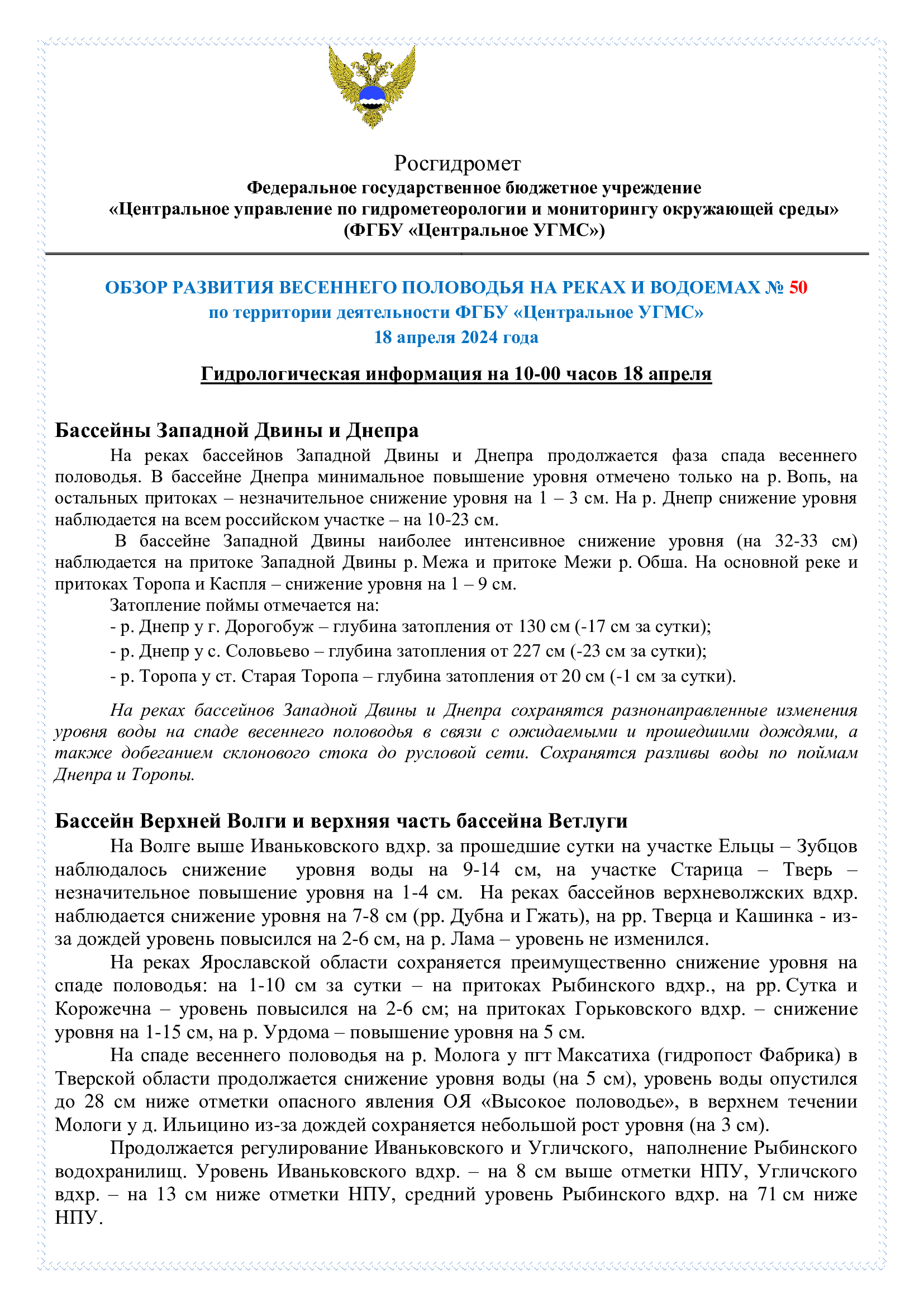 Ранее Предыдущая запись: Обзор развития весеннего половодья на реках и водоемах №48