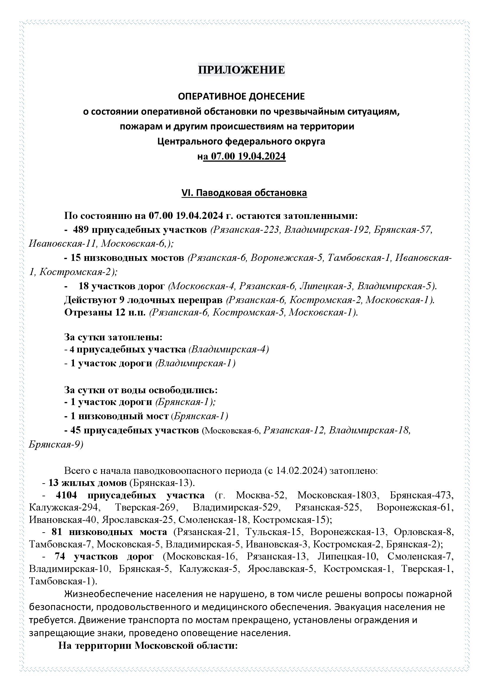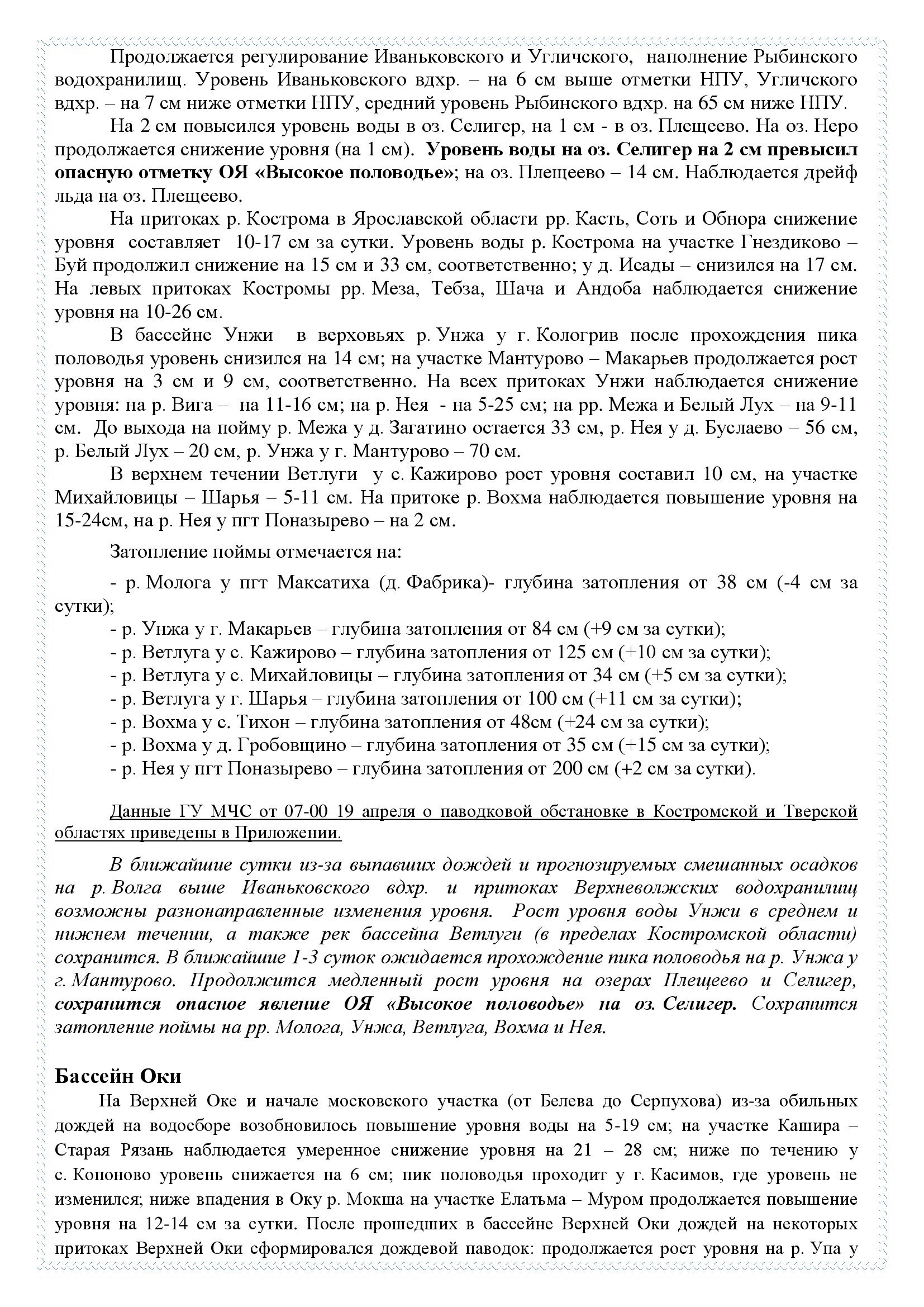 Обзор развития весеннего половодья на реках и водоемах №50